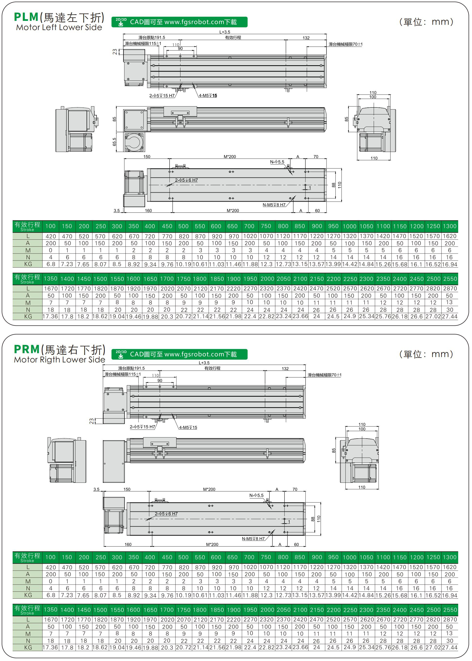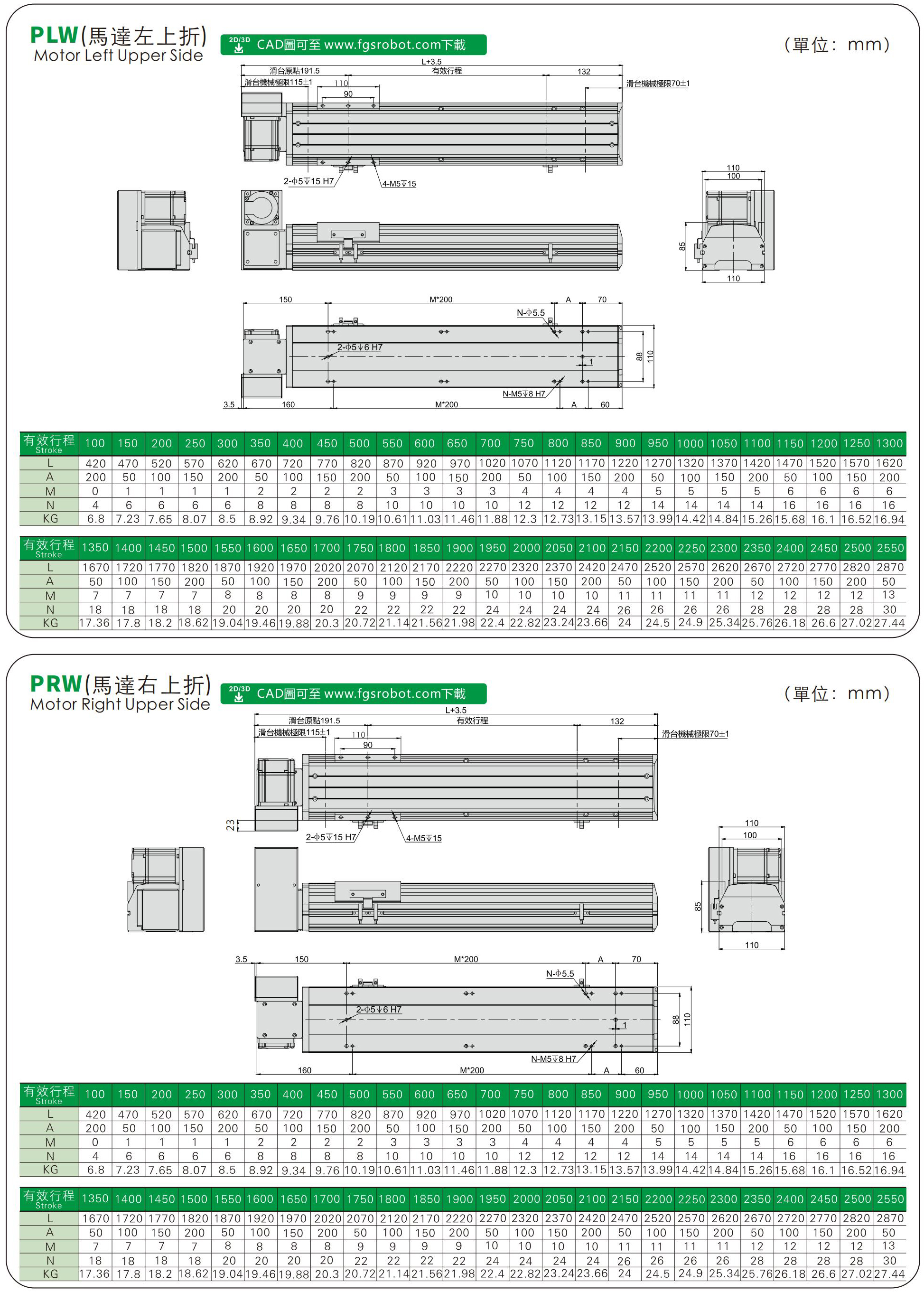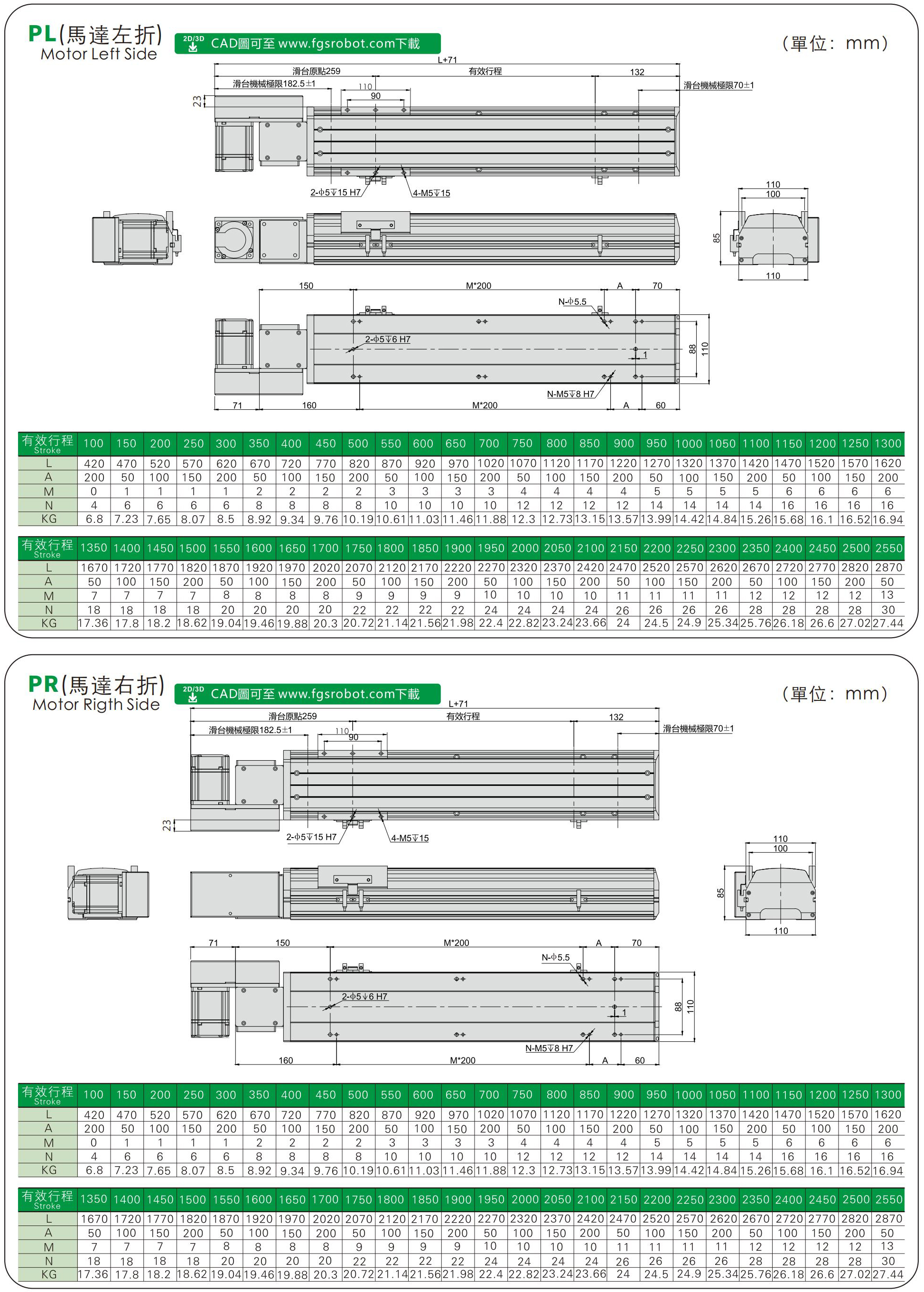 FHB110S標準皮帶模組、直線滑臺線性模組