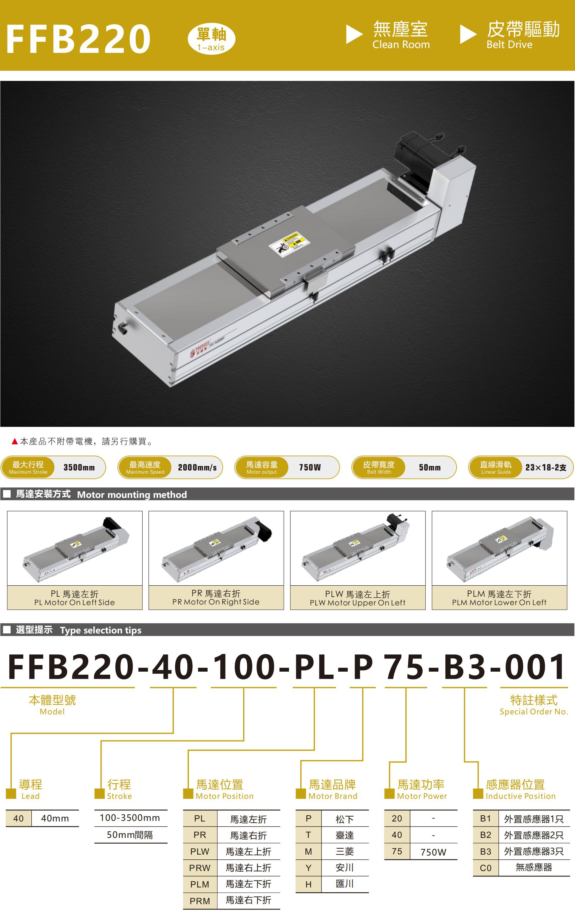 FFB220無塵皮帶模組、直線滑臺線性模組